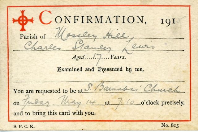 Charles Stanley Lewis was known to the family as Stanley. Baptized at St. David’s Anglican Church in Liverpool, he was later confirmed in Mossley Hill parish in 1915. Mossley Hill Anglican Church was the Lewis family’s church. Stanley sang in the choir there.